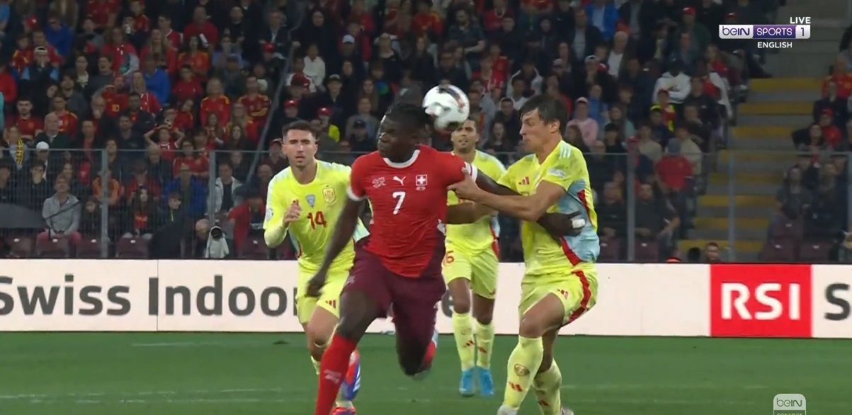 欧国联小组赛第2轮客场挑战瑞士的比赛中,西班牙后卫勒诺尔芒因为战术犯规被主裁判直接红牌罚下。