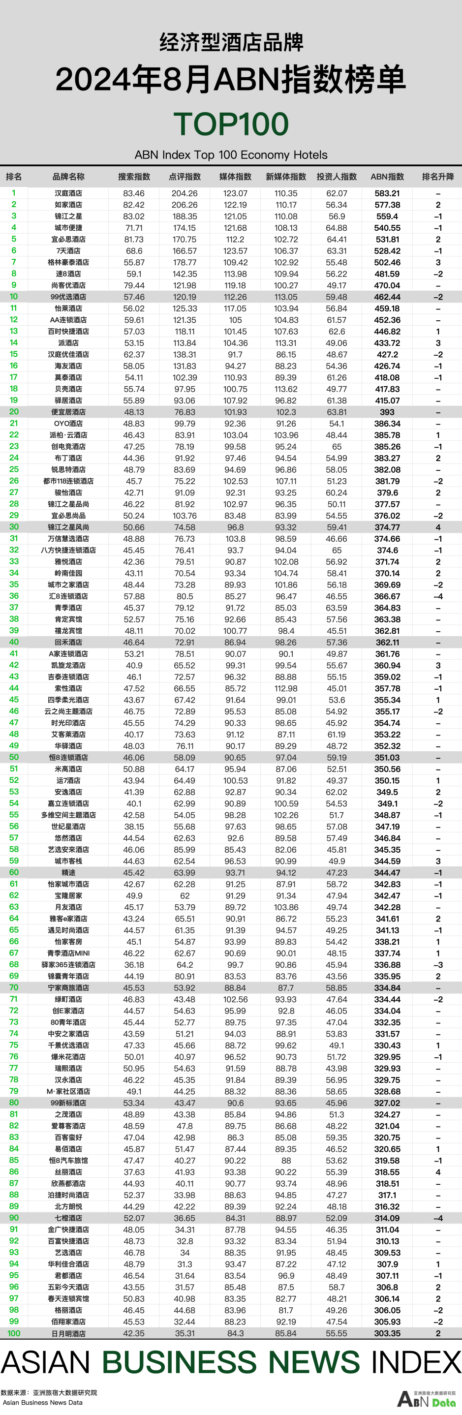 据亚洲旅宿大数据研究院(ABNData)监测品牌统计,8月新开业酒店249家,环比涨幅15.8%。