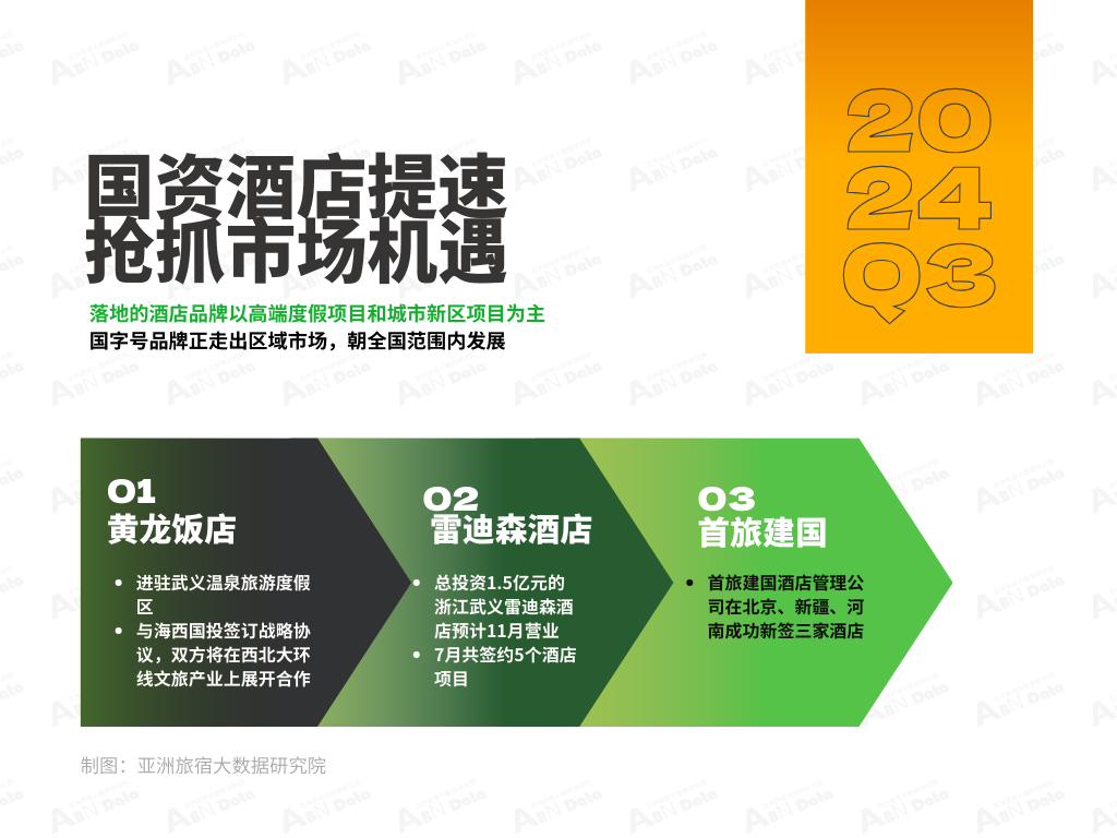 国资酒店提速抢抓市场机遇 | 8月,以“森林温泉”为理念的武义温泉旅游度假区项目宣布开工,并将引进杭商旅集团旗下五星级酒店品牌——黄龙饭店,打造大型温泉文旅康养综合体。此外黄龙酒店管理集团还与海西国投签订战略协议,双方将在西北大环线文旅产业的发展上展开全面合作。主要聚焦于酒店餐饮和文化旅游板块,通过资源共享和优势互补,共同推动西北文旅产业的发展。黄龙酒店管理集团于2023年7月14日正式揭牌成立,隶属于杭州市商旅运河集团。截至今年6月底,黄龙酒店管理集团新签项目超80余个,新签客房数超10000间, 涵盖华东、华北、新疆等多区域项目。