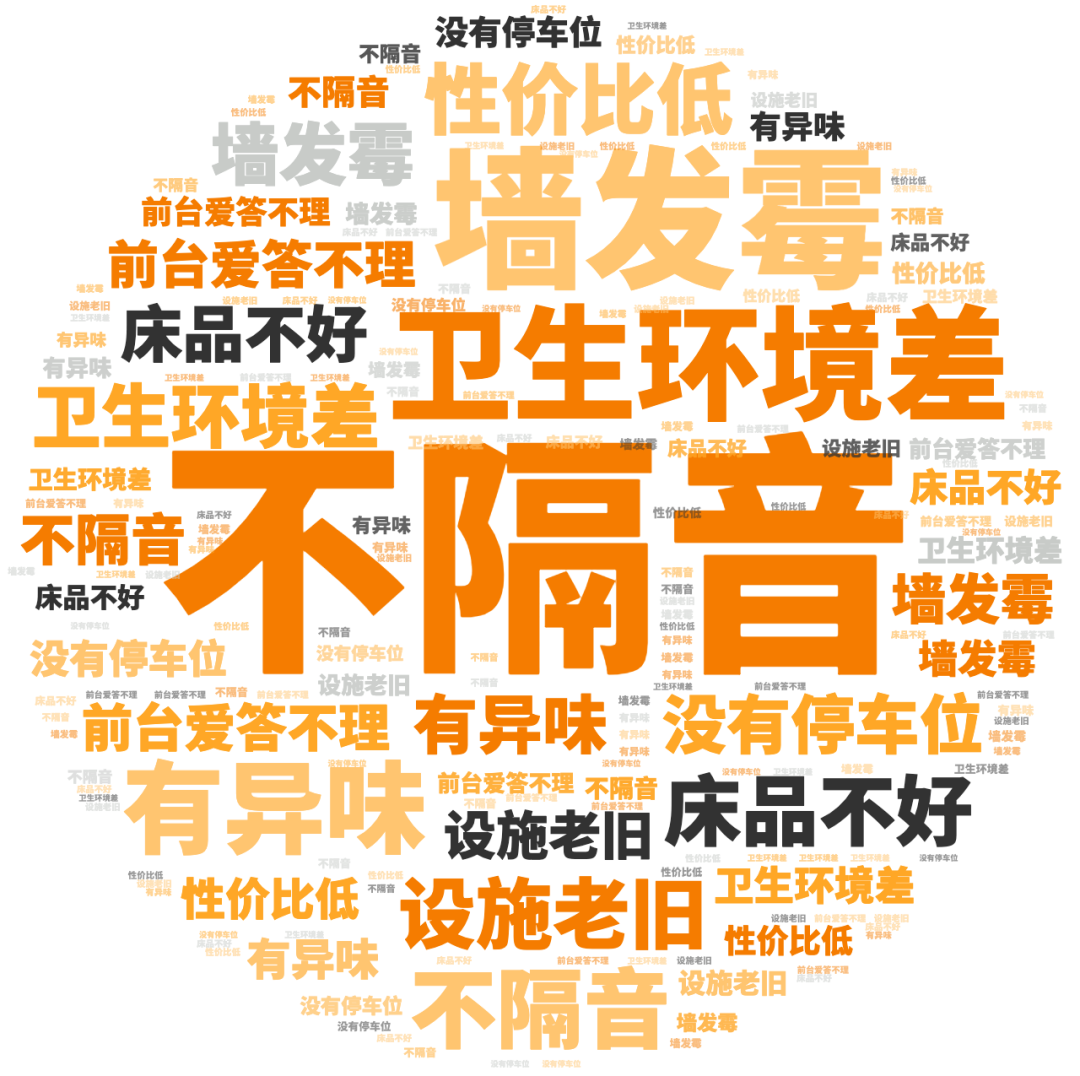 点评指数:点评指数平均得分为129.79,环比上月涨幅显著,本月未有品牌拿到300分,好评维度平均是差评维度的1.7倍。好评关键词主要是睡的舒服、水果新鲜、有设计感等,差评主要集中在服务怠慢、乱收费、设施陈旧等问题。