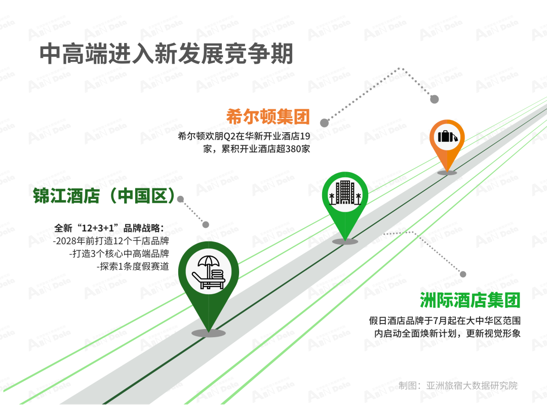 值得注意的是,此次报告中有2家酒店集团上调了本年度的开店目标,华住从1800家上调到2200家,亚朵从360家上调到400家。中高端市场仍是门店提速的主要目标地,华住二季度中高档酒店数量为4880家,占比48.07%,较2023年末相比增长约585家。