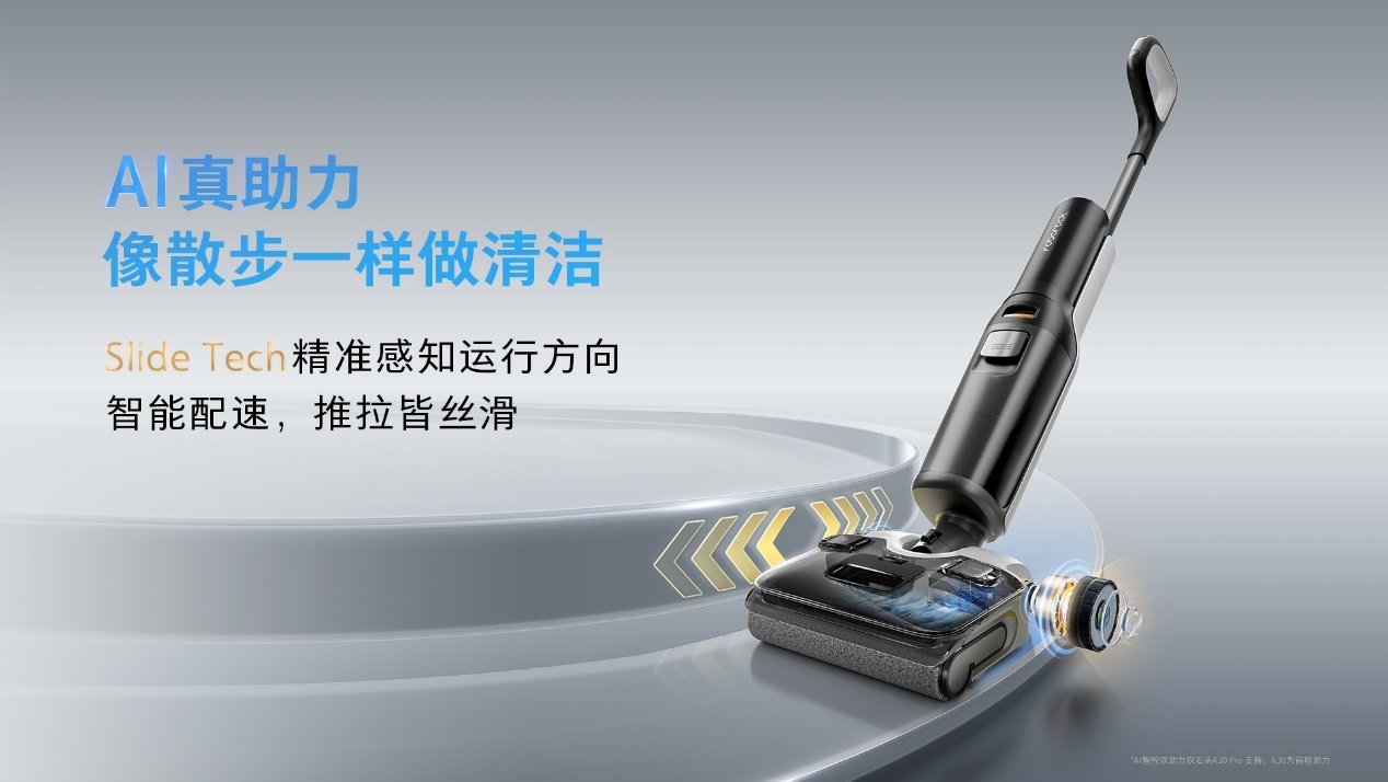 石头洗地机A30系列搭载AI双向助力系统,它能精准感知清洁时的运动方向并提供智能助力,家里的老人、小孩也能轻松推动,让清洁过程更省力。