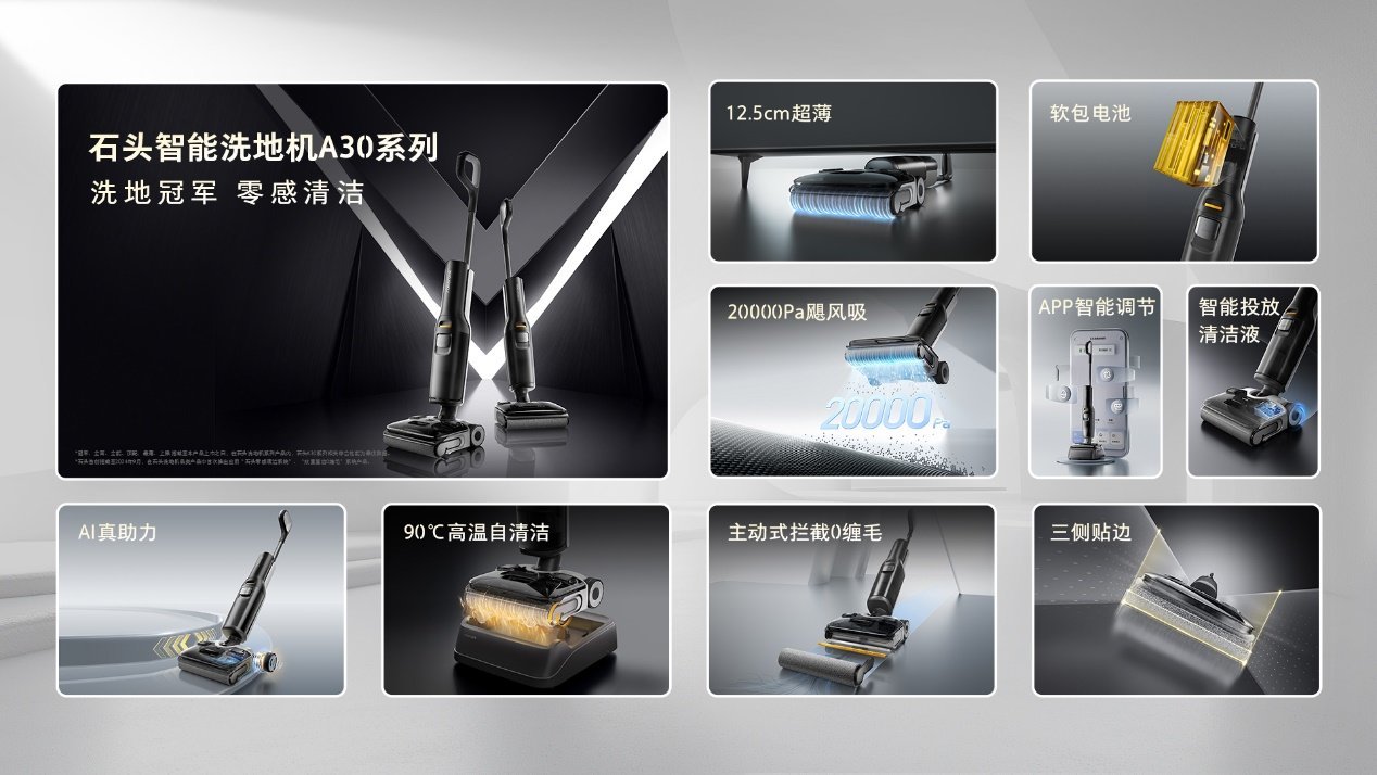 9月9日消息,今日石头科技举办新品发布会,正式带来全新的石头洗地机A30系列。凭借搭载全新主动式拦截0缠毛技术,石头洗地机A30系列在清洁过程实现了毛发0缠绕,给用户带来更便捷的清洁体验。