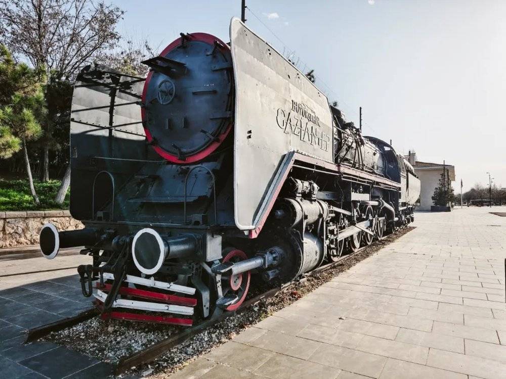 ▲途径加济安泰普火车站,广场上的蒸汽火车头