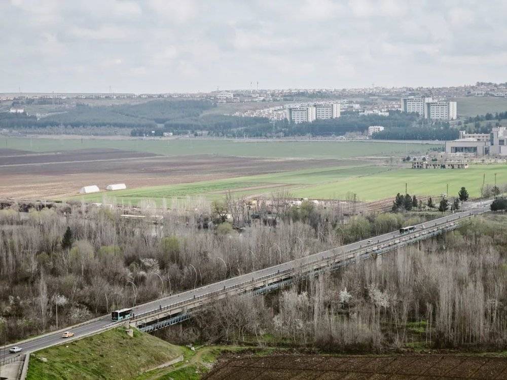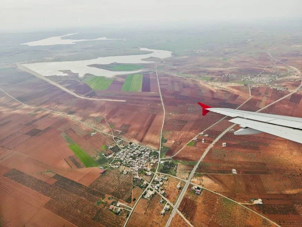 是的,加济安泰普紧挨着叙利亚边境,当飞机快要着陆的时候,我一直往舷窗外张望,加济安泰普机场所在的位置理论上能够看到叙利亚,甚至看到阿勒颇。但由于当天下着濛濛细雨,我只看到下方大片肥沃的红土与绿野,机械化阡陌耕作在起伏的丘陵大地上勾勒出了斑斓的几何线条。