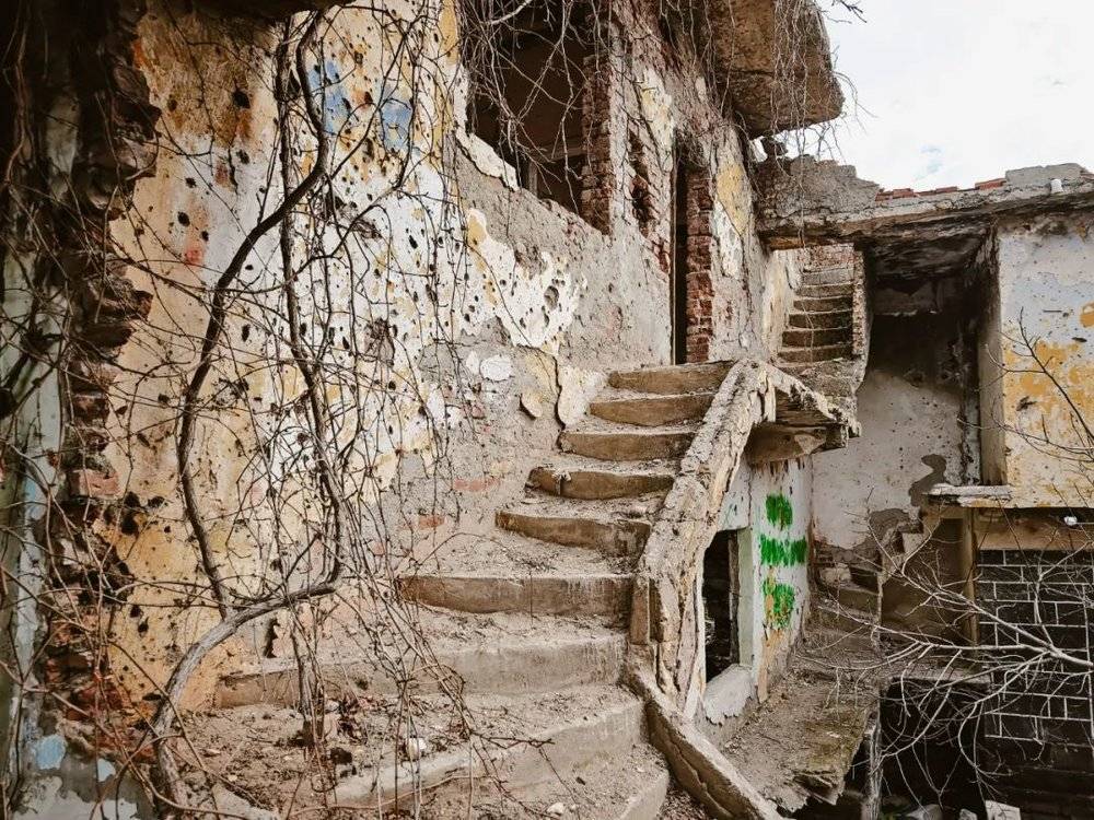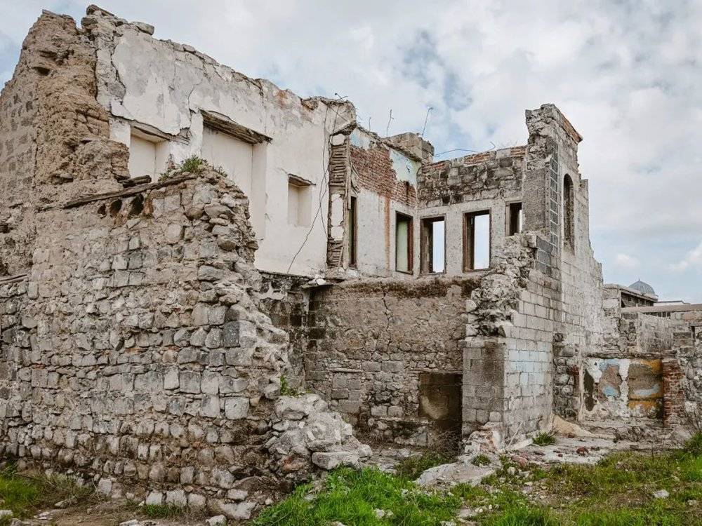 我们找到了一开始想要寻访的亚美尼亚教堂,大门紧闭无缘一见,外墙建筑都是新近重建的,矗立在被打成马蜂窝的民居边上……当年战况的惨烈只能从这仅有的几栋残破房屋来推想。