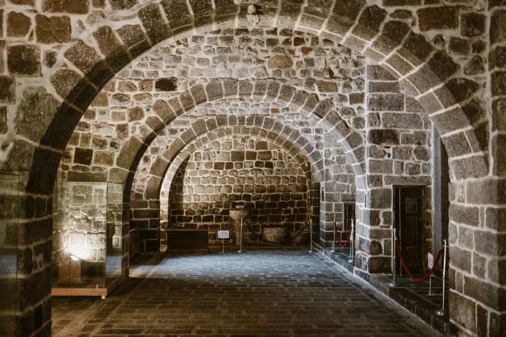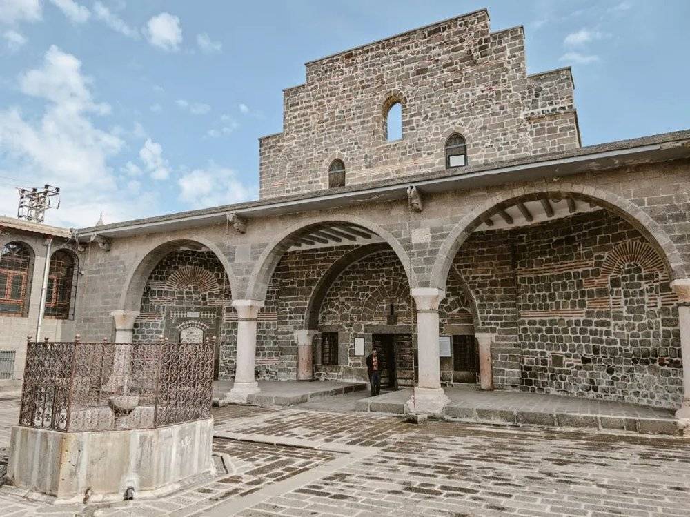 从围城战的现场出来后,我们又一头栽进老城西边,找到了全城现存最古老的建筑——一座叙利亚东正教圣母教堂(Syriac Orthodox Church of the Virgin Mary)。这座教堂可以追溯到公元前1世纪,最初是一座前基督时期的神庙,后来在公元3世纪改建为了现在的这座教堂。教堂的门是罗马时代晚期的,祭坛的装饰是拜占庭时期的;内部保存了相当多的文物、手稿和宗教圣物,比如耶稣十二使徒之一的圣托马斯(Thomas the Apostle)的遗骨。