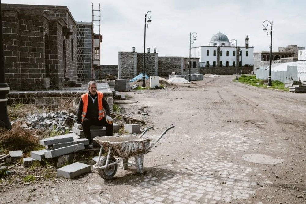 我们走进的,正是2016年围城战的废墟。根据相关报道,除了清真寺之外,土耳其政府完全不打算修复受损的历史建筑,索性把整片街区推平,以抹除内战的记忆。老城部分地区已经重建起了一些商品房、店铺,但更多的地方只是清理了战争废墟,留下一片白地。按照规划,这里打算要建一个全新的旅游街区,发展当地的旅游业。