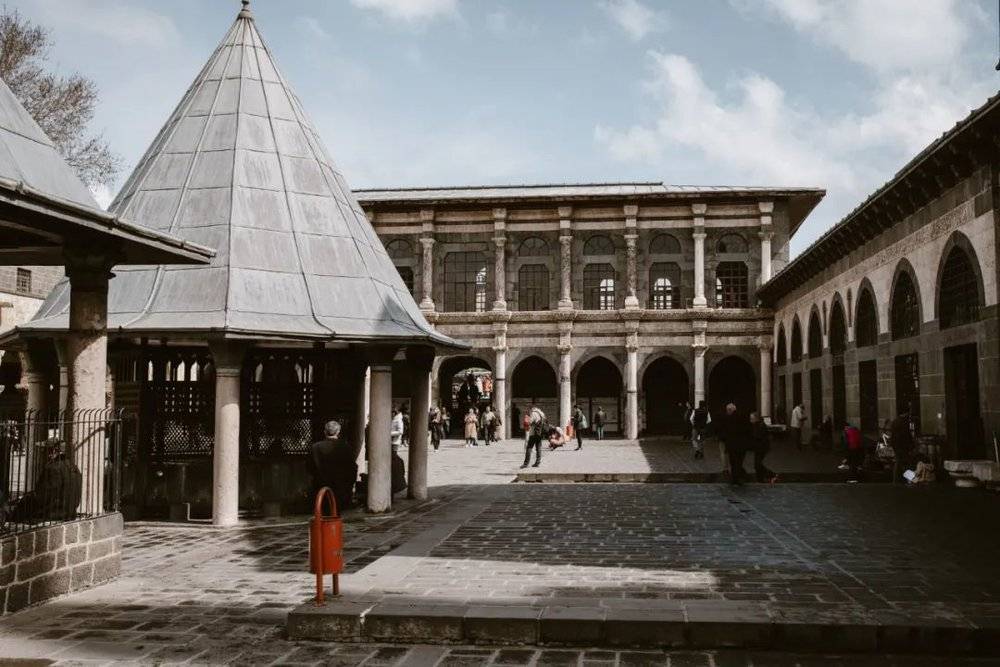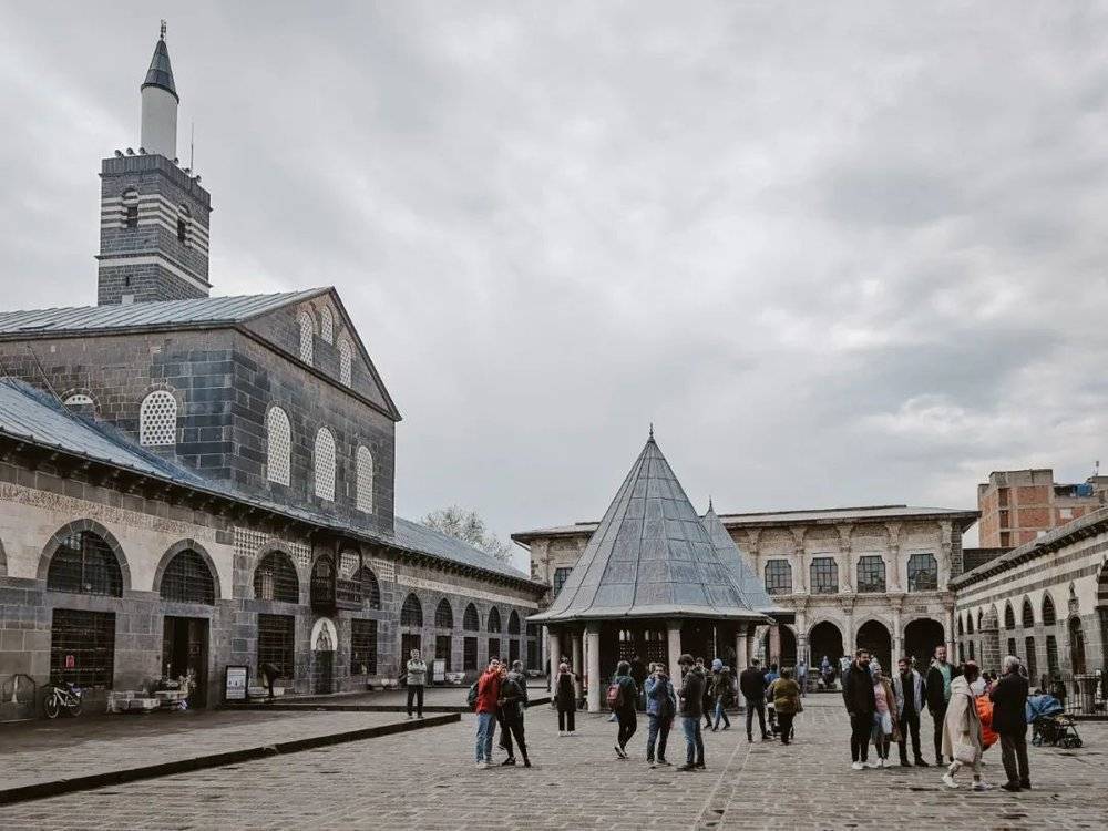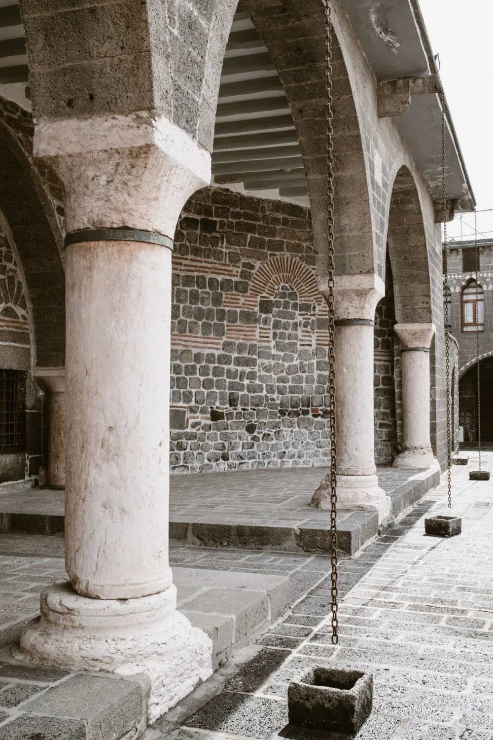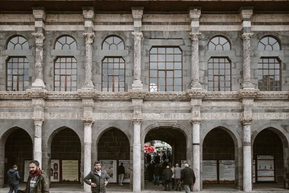 抛开当地的宗教、民族纷争不谈,迪亚巴克尔及其周边的旅游资源在我看来绝对是世界第一流的,而当地政府也确实在动脑筋发展旅游业。比方说迪亚巴克尔大清真寺是土耳其最古老的清真寺,阿拉伯人在公元639年征服阿米德之后,将当地拜占庭风格的主教堂改建成了现在的这座清真寺,因此这座清真寺非常独特——庭院里居然有用藤蔓图案和拉丁铭文装饰的石柱和立面;它的宣礼塔并非圆塔而是方塔,很可能是继承自基督教的钟楼。