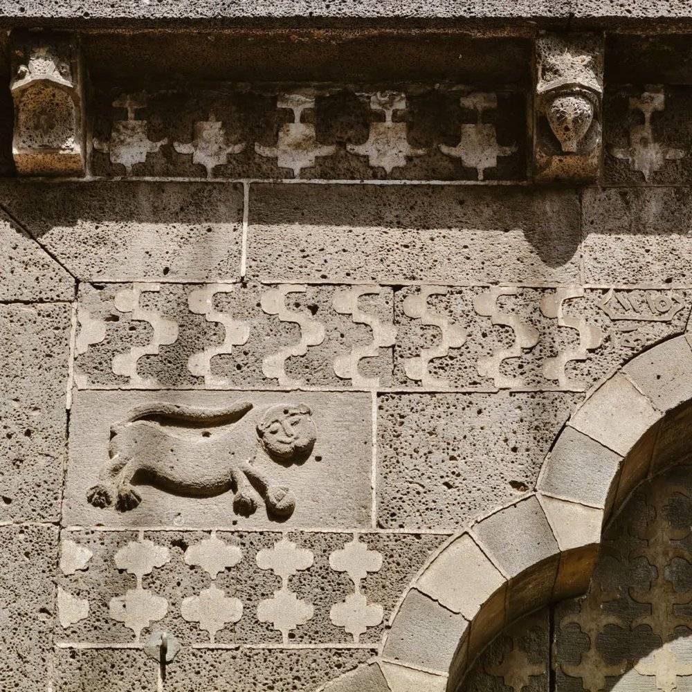 ▲中间的装饰带是库法体阿拉伯文字,不过是结合了装饰性元素的库法体变体,说明这条装饰带,应该是比较晚期才加上去的。狮子捕猎公牛的场景,则是非常典型的两河文明浅浮雕元素。