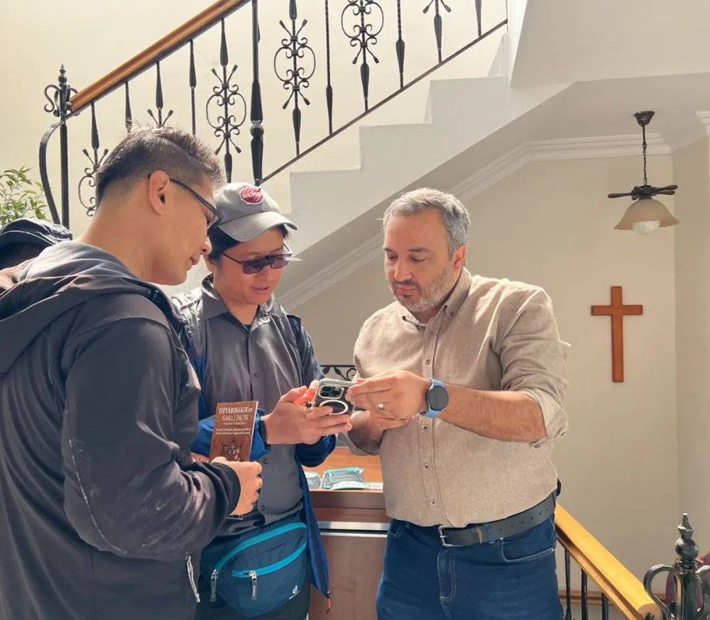 圣母教堂是迪亚巴克尔老城戒备最为森严的地方——围墙被加高加固,拉了一圈铁丝网,门口专门停了一辆执勤的装甲车。因为像这种基督教徒聚集的地方,很容易成为恐袭的目标。圣母教堂大门对面有座楼,是当地基督徒的活动中心,我们只是好奇地想要进去张望一下,结果遇到了一位热情的当地大叔,主动带着我们参观,给我们介绍这个地方。