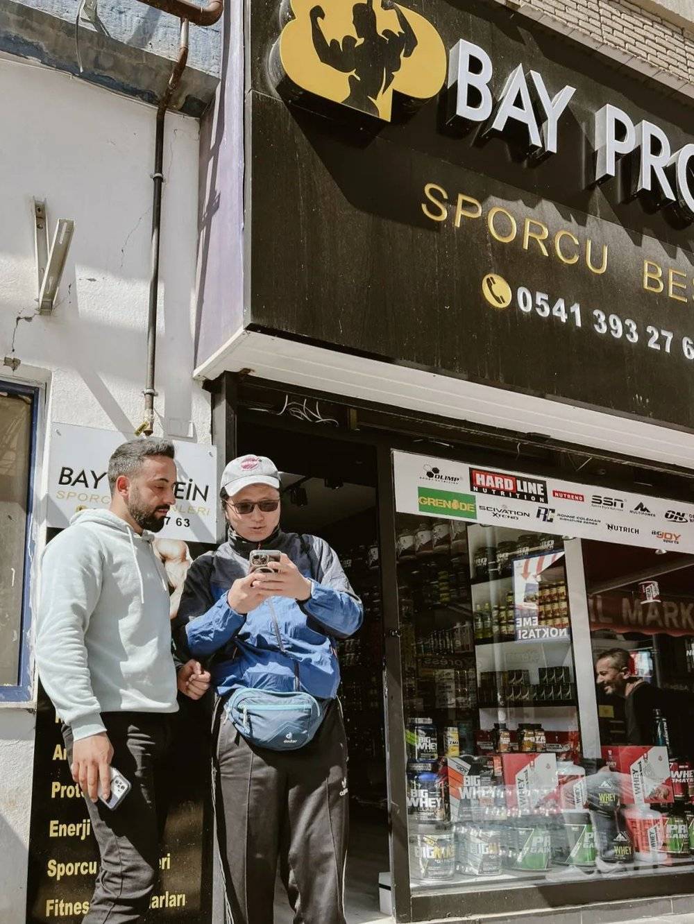 我们得知“相机朋友”大名叫阿迈特(Ahmet),工作是体育教练,平时开这个小店卖卖蛋白粉啥的。他很骄傲地告诉我们说他代表土耳其参加过残奥会还获得了奖牌,项目是田径短跑,可我横竖没看出来他哪里有残障,后来才知道他是负责给盲人短跑运动员领跑的。
