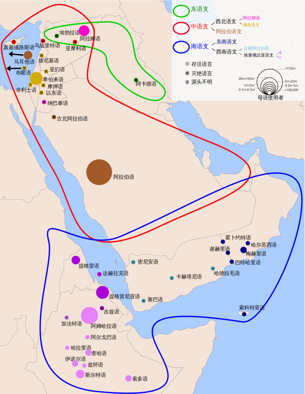 ▲闪米特语系的东语支已经全部灭绝,不过阿拉姆语曾与东语支有重合的活跃地区,因此保留了许多东语支阿卡德语的词汇