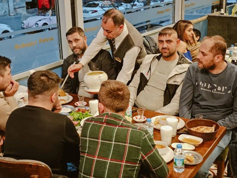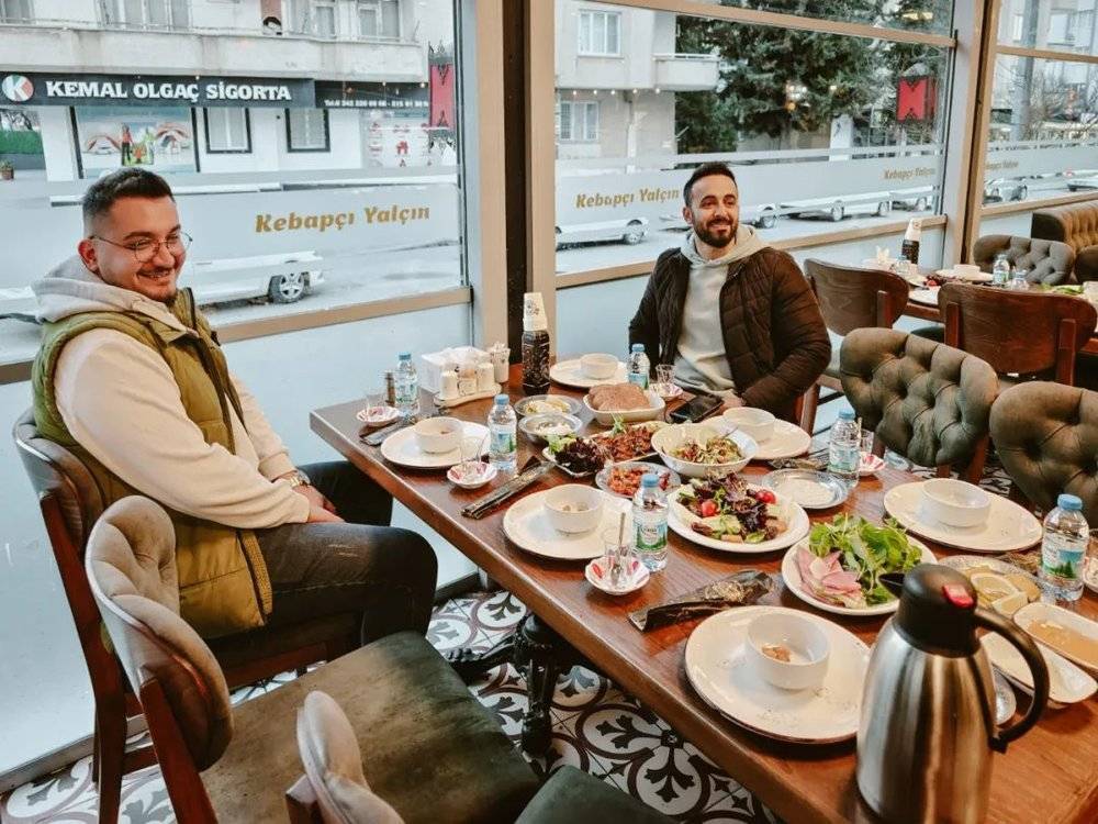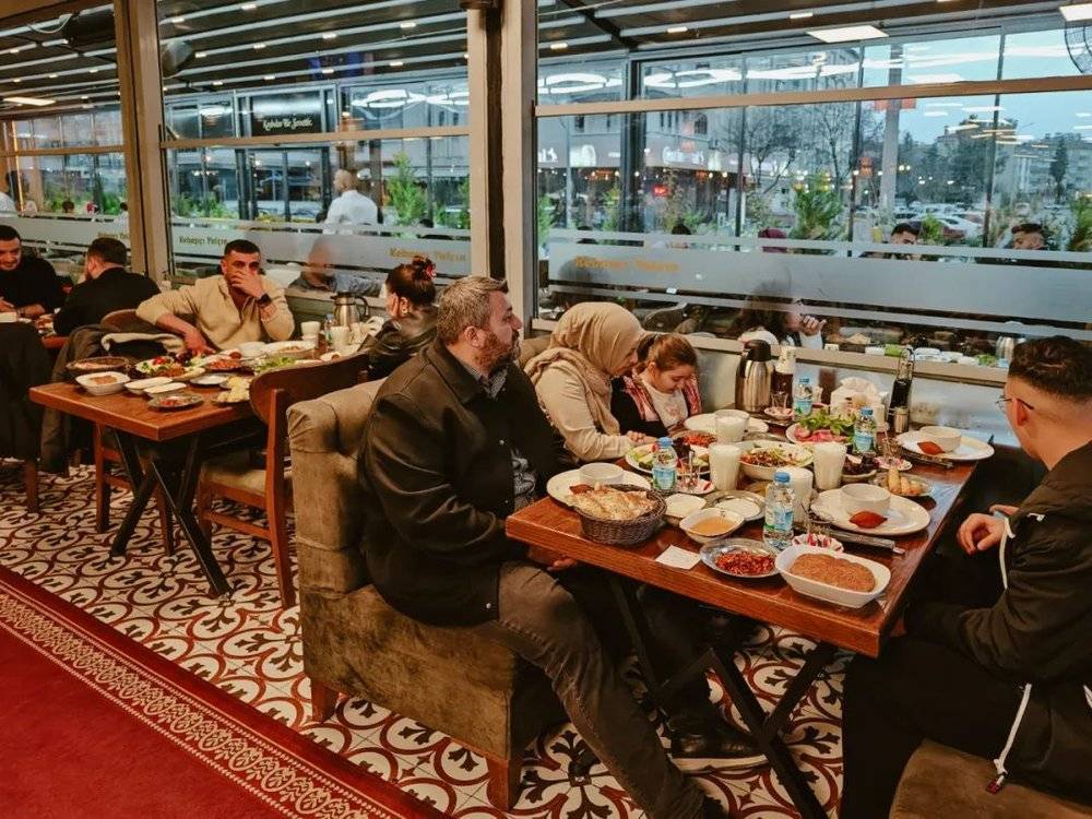 我听他这样一说,赶紧让他订了六个人的座位,因为我非常想见识一下在加济安泰普这种地方,什么样的餐厅居然会不订位子就吃不上。阿迈特让我们晚上6点到餐厅碰头,对此我有些困惑——斋月期间每天要到日落之后才能进食,当天日落是6点44分,约7点吃饭不是更合适吗?6点到餐厅眼巴巴看着食物却不能吃,那不是活受罪吗?