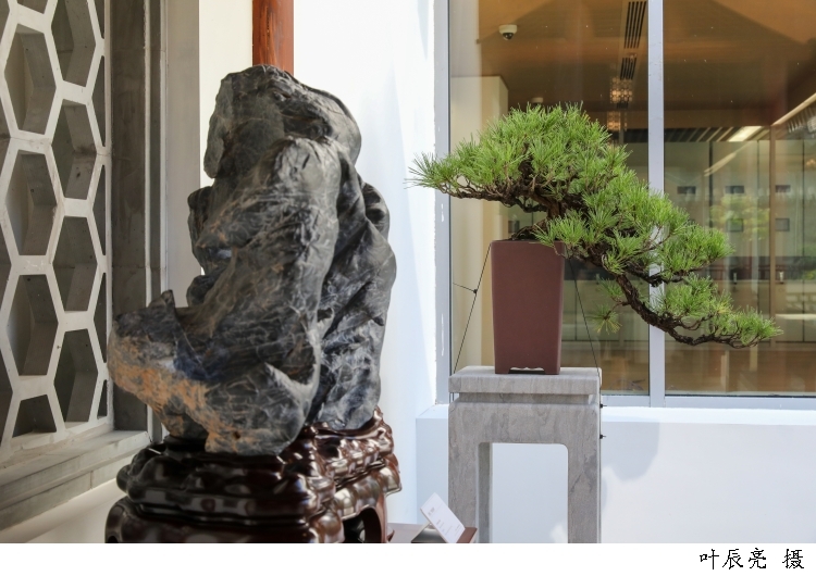 本次展览位于上博东馆屋顶花园的东园、中园以及江南造物馆中庭,分别以“古石供”“名石新供”“海派盆景”“海上兰室”为主题,遍设奇石佳木,使山林岩谷之趣溢然环堵之间,足以令观众流连忘返。