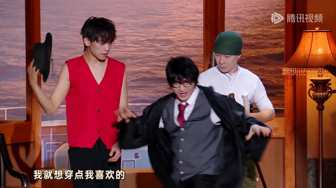 而全场笑得最大声的一段,是出演海盗的三个演员因为服装还没到,干脆把服装间当成了服装店,天空一声巨响,三位怎么看怎么都有点眼熟的角色闪亮登场——“反正服装还没到,我就想穿点我喜欢的!”