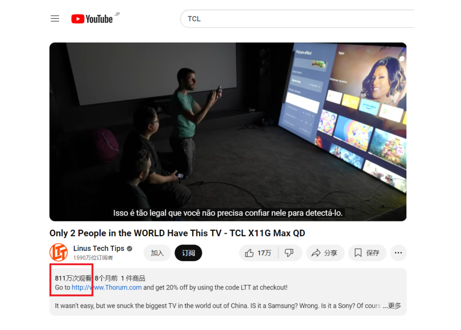其中,不少产品已在全球市场上得到用户检验。比如,今年年初就有一位科技博主Linus,费尽心思从中国“偷运”了一台115吋电视到美国,拍摄了开箱体验视频,发到了YouTube频道上,播放量已超过800万次。