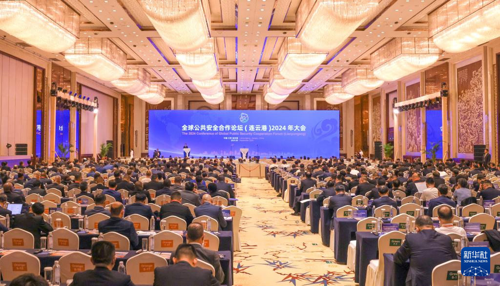 9月9日上午,全球公共安全合作论坛(连云港)2024年大会在江苏省连云港市开幕。这是主旨发言现场。新华社记者 殷刚 摄