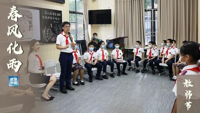 广州中医药大学副校长、广东省中医院院长张忠德向“忠德中队”学生代表讲述中医药文化故事。查冠琳供图