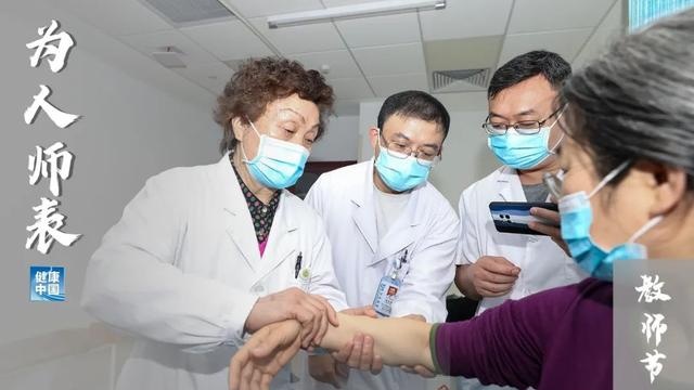 国家级非物质文化遗产代表性传承人、航空总医院中医科主任医师罗素兰在给学生示范罗氏正骨手法。张建房供图