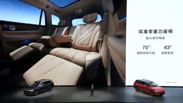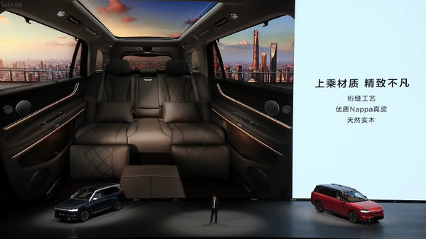 而在配置方面,五座版车型也基本都拉满了。其采用一体式中央储物区,同样提供了女王副驾,NAPPA真皮座椅,澳洲进口羊毛地毯,全系标配舒云座椅,扶手放下即变豪华大四座,双准零重力座椅,前后排都支持无线与优先快充,支持双人沙滩椅模式,大五座后备箱深度接近1.2m,宽度超过1.2m,加捻簇绒材质,标配双滑轨,支持多功能装载托盘,铝合金行李限位器,1043L超大容积后备箱,定制竞品储物箱,全新山海坐席,后备箱双暗格。