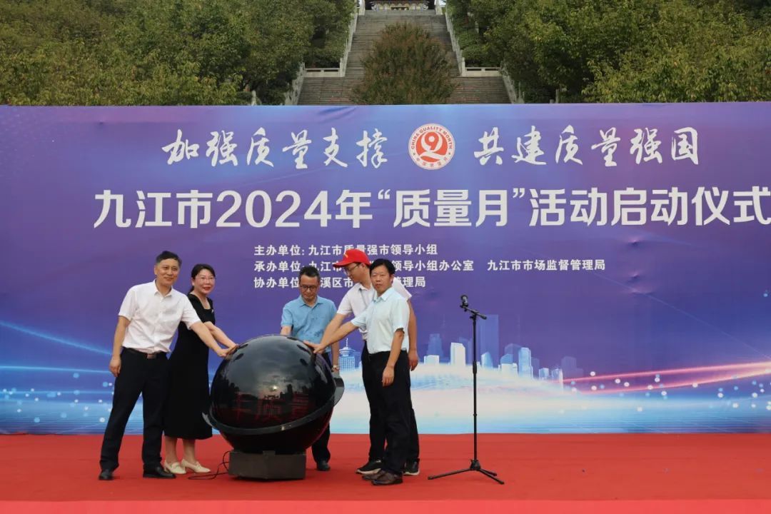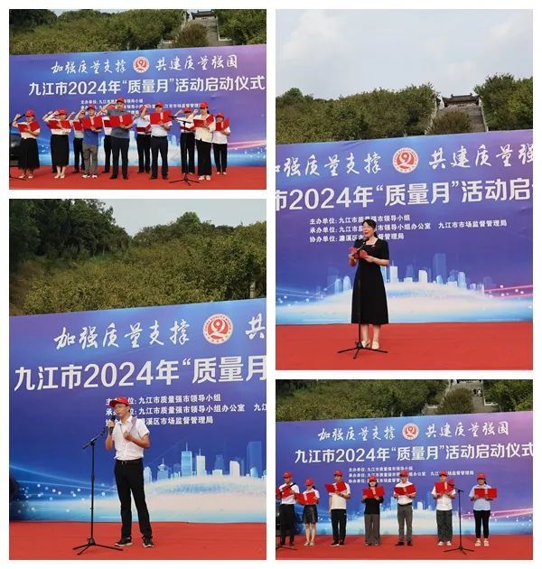 9月10日,九江市2024年“质量月”活动启动仪式在濂溪区南山公园广场举行,市政府副市长马海威出席并宣布活动启动,市政府副秘书长邓丽娜主持,市市场监管局党组书记、局长朱发炳出席活动并对全市质量月活动进行部署,市局党组成员、副局长吴仁江出席活动,濂溪区政府副区长李竞宇出席活动并致辞。