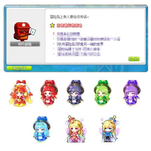 9月11日至10月1日,接取[秋月冒险岛记忆狂欢]秋月冒险岛记忆狂欢!任务,获得梦之器可以填充记忆狂欢值,消灭等级范围内怪物获得记忆狂欢值,充满梦之器时召唤秋月冒险岛之花,获取经验值奖励。