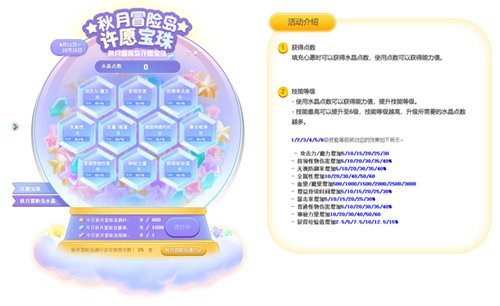 填充心愿时可以获得水晶点数,使用点数可以获得能力,用于升级技能。