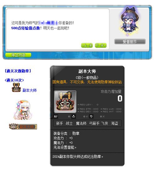 通关探险可以获得500点经验值点数,200级以上角色可以使用经验值点数,经验值点数只能在活动期间使用。完成10次通关可以获得副本大师勋章。
