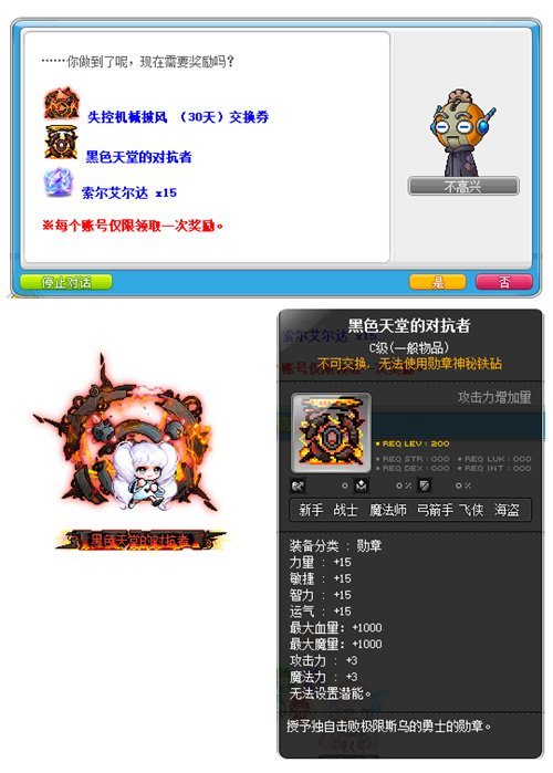 此外,9月11日起至10月15日,接取[前往黑色天堂]不高兴的口信任务。完成任务后根据消灭斯乌的次数可获得活动奖励。