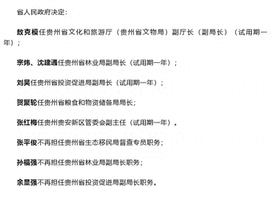 9月11日,贵州省人民政府关于敖克模等任免职的通知公布。