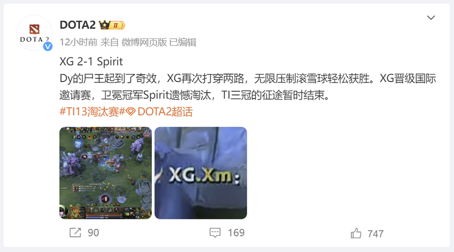 今天凌晨,我国XG战队2:1战胜卫冕冠军Spirit战队,闯进TI13八强。此次对决,XG战队在先输一局的情况下,逆境获胜,有惊无险。由于我国其它两只参赛战队G2×iG和Team Zero已经回家,因此XG战队也成为了CN刀塔今年TI最后的希望!