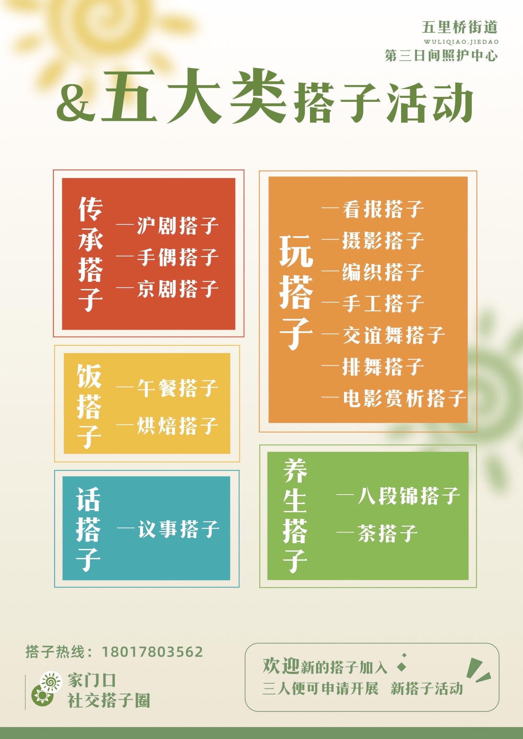 围绕社区居民个性化需求,第三日间照护中心组建五大类“搭子圈”,目前已组建十五个搭子小组。推动召集人引领小组前进,发挥连接成员、整合资源、促进沟通与协作的桥梁作用。