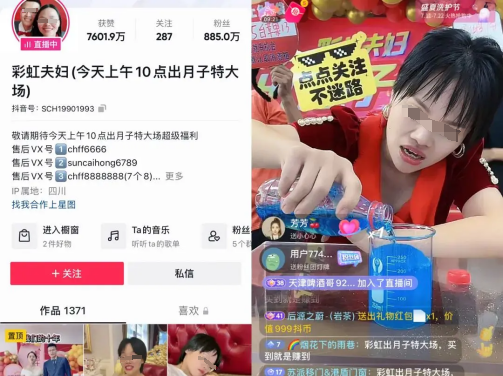 比如2022年,网红“彩虹夫妇”第三胎儿子刚出生,就在抖音策划了一场“出月子特大场”专场直播,一举火遍互联网,直接冲上了热搜。