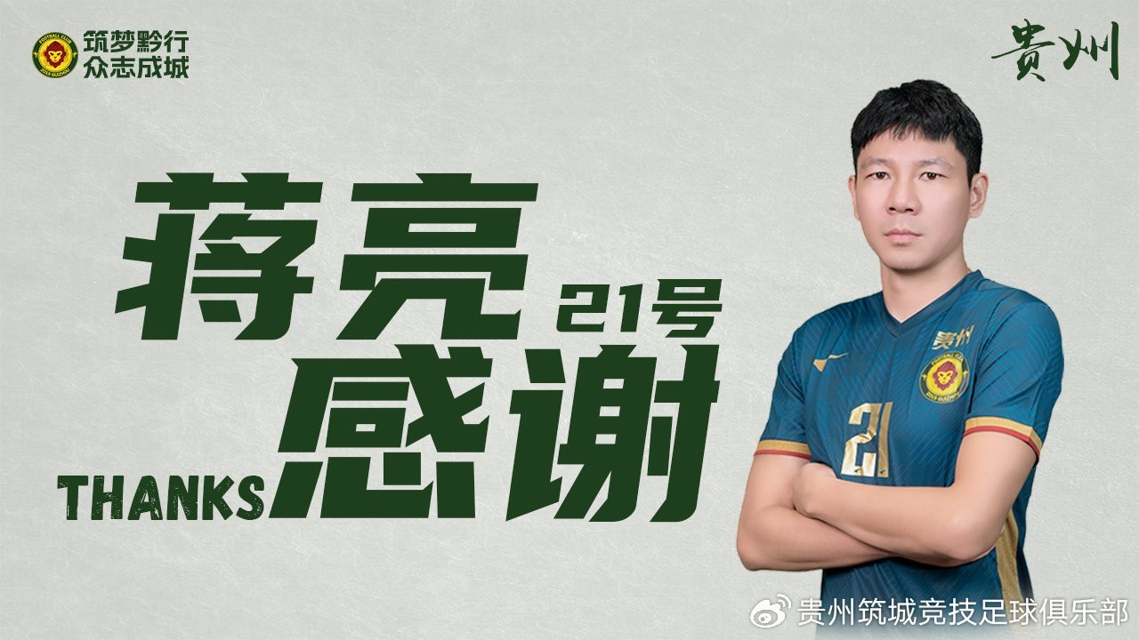我们在此遗憾地宣布,经过与球员蒋亮的深入沟通和多次努力,俱乐部尊重其因个人原因提出的提前终止合同的决定。蒋亮将于今日正式离开贵州筑城竞技足球俱乐部。