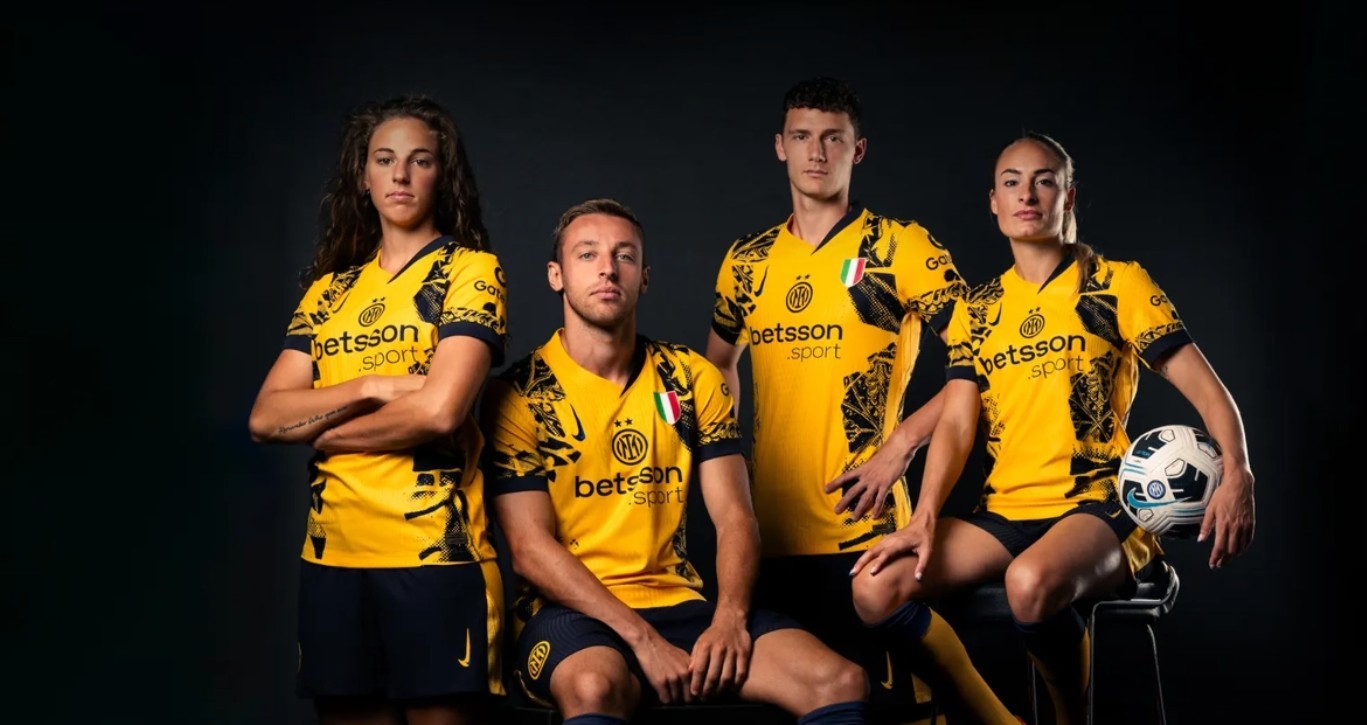 根据介绍,除了华丽的金色外,新款国米球衣还强调了一种引人注目的设计,结合了米兰市的细节和象征与标志性的蛇形图案。