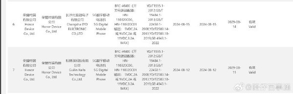 此前,CNMO注意到,荣耀终端有限公司旗下型号为“BRC-AN00”的5G数字移动电话机已经入网,疑似荣耀X60系列机型,生产厂商为长沙比亚迪电子有限公司和桂林深科技有限公司。