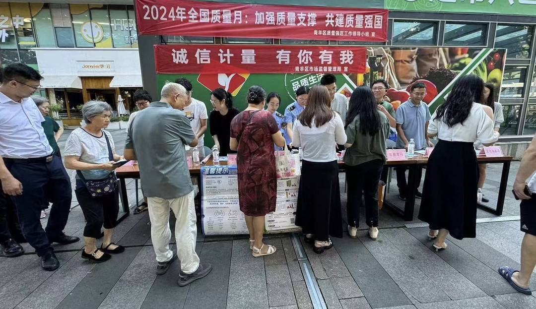 今年9月是全国第47个“质量月”。9月11日,成都市青羊区市场监管局联合区教育局、区执法局、区卫健局、区应急局等9家区级部门在青羊区蓝润·摩里中心前广场以“加强质量支撑 共建质量强国”为主题,集中开展2024年“质量月”主题宣传活动。