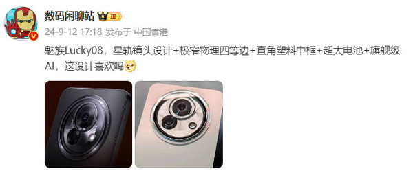 【CNMO科技消息】9月12日,星纪魅族正式官宣:星纪魅族AI生态发布会定档9月25日14:30。届时将发布星纪魅族Lucky系列的首款产品——Lucky 08及其他汽车、XR眼镜新品。现在,数码博主@数码闲聊站 曝光了该机的设计。