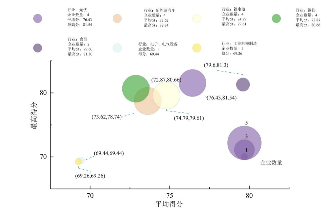 新能源汽车企业有4家企业入选,其平均得分为73.62分,位居行业第四,最高分为华为控股的78.74分。新能源汽车出海已是大势所趋,但以欧美为主的发达国家,凭借其在低碳转型方面的先发优势,围绕汽车全产业链制定了一系列严格的准入性法规,对我国新能源汽车的出海造成很大限制。为了保持新能源汽车的出口增长并应对日益严峻的绿色贸易壁垒,中国的新能源汽车出口企业必须在碳足迹管理方面持续发力,尤其是在筑牢本土汽车碳数据,推动碳足迹信息国际互认方面。