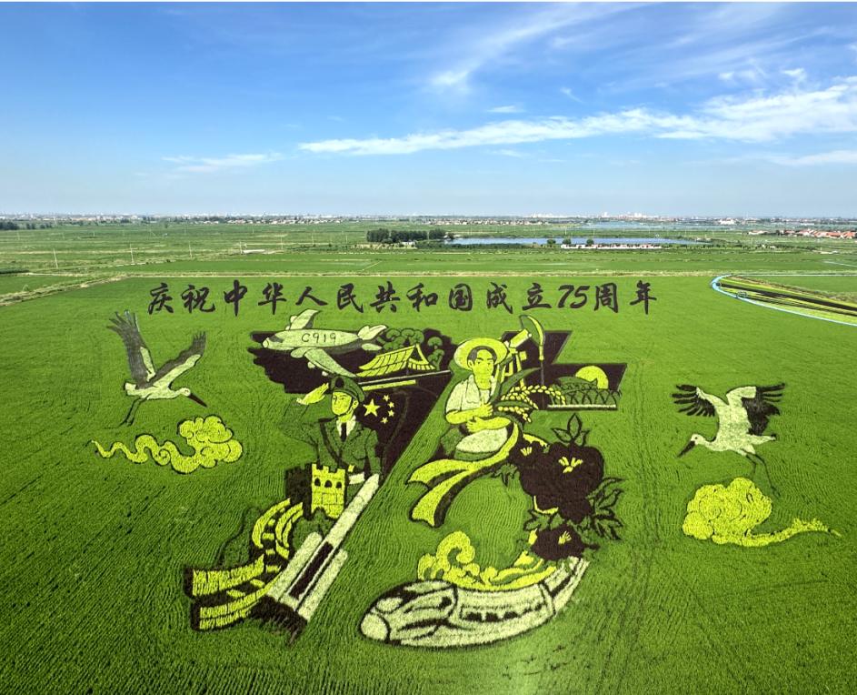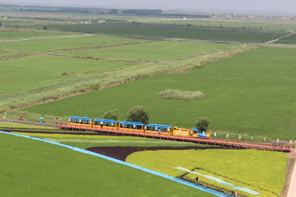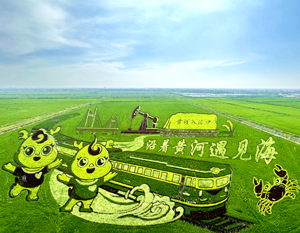 站在观景塔上极目远眺,“沿着黄河遇见海”等主题的稻田画铺展在眼前,在蓝天白云的映衬下,更显清新脱俗。