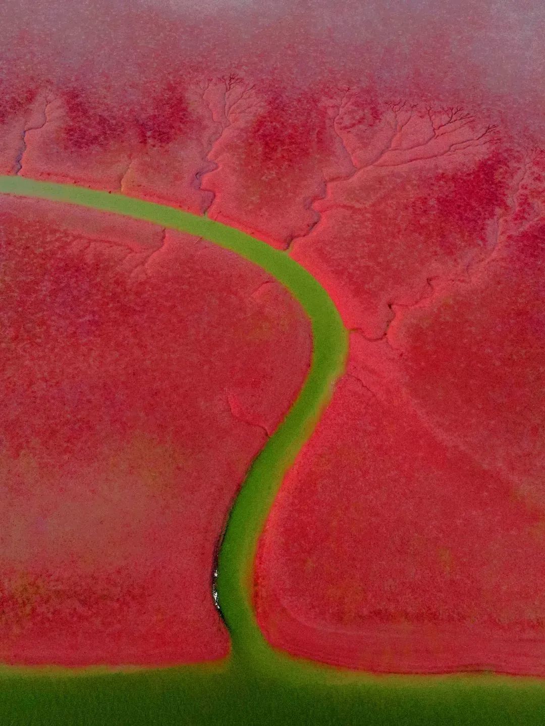每年秋季,红海滩上的碱蓬草达到全年最红的时刻,它们仿佛是大自然精心铺设的红地毯,迎接每一位远道而来的客人。