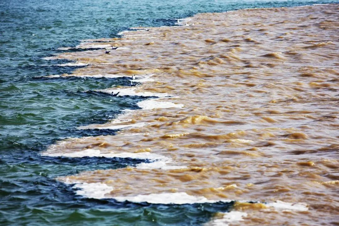 当然最让人期待的,当属“黄蓝交汇”的奇观。乘船自黄河口旅游码头顺流而下,至黄河与大海交汇处,可见淡青的天、浑黄的河、碧蓝的海、雪白的浪浑然相合,举世无双。这是独属于东营、独属于黄河口的奇观。