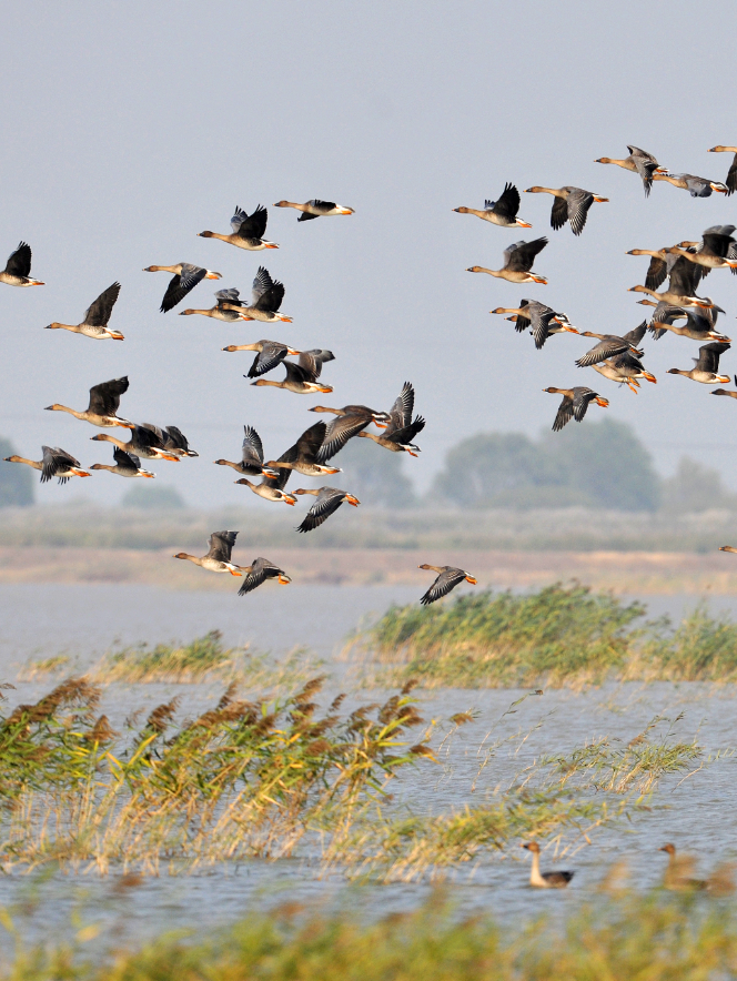 “黄河入海蕴奇观,百鸟翔游水云间。”黄河口有湿地游船、海滩捉蟹、鸟类放飞、柳林栈道、舟游白鹳湖……