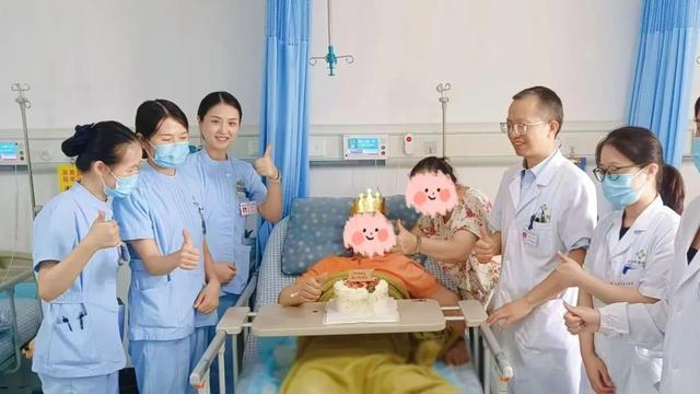 近日,长沙市第四医院全科医学科的病房传来阵阵歌声。副主任医师郑学斌和护士长刘佳龙带领医护人员唱着《生日快乐》歌,推着蛋糕走进病房为患者陈大爷庆祝69岁生日。大家围绕在大爷身边,为他戴上生日帽,点燃蜡烛……