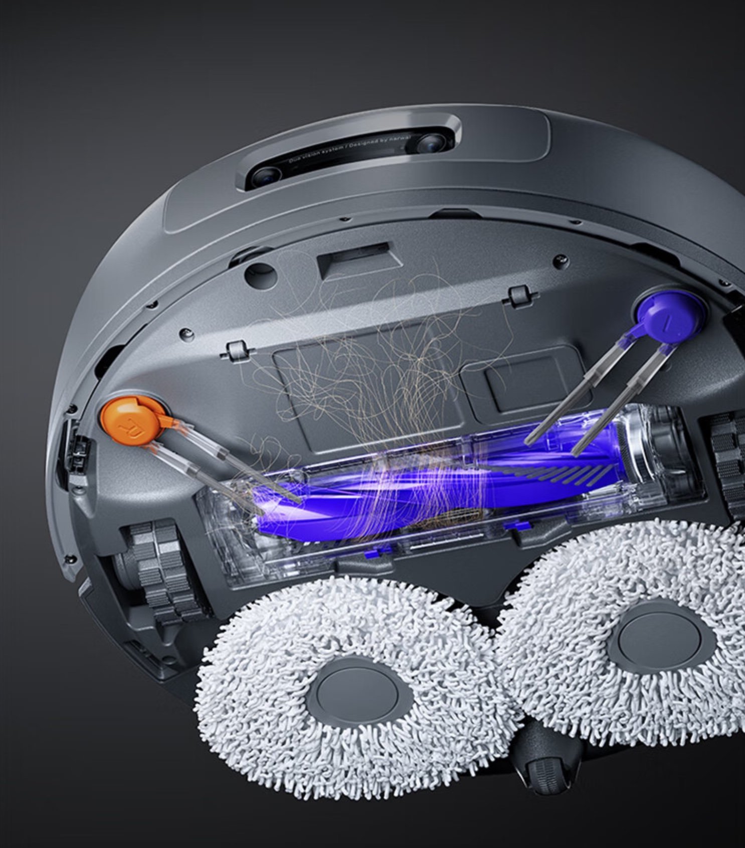 清洁方面,云鲸逍遥001 Max 的机器人拥有 18000Pa 超强吸力,配合整机毛发零缠绕系统,无论是边刷清洁还是滚刷清洁都能实现不漏发、不缠发。云鲸逍遥001 Max 还创新性采用仿生手外扩擦地功能,拖布用 8N 强力加压,地上的顽固污渍也能轻松清洁。