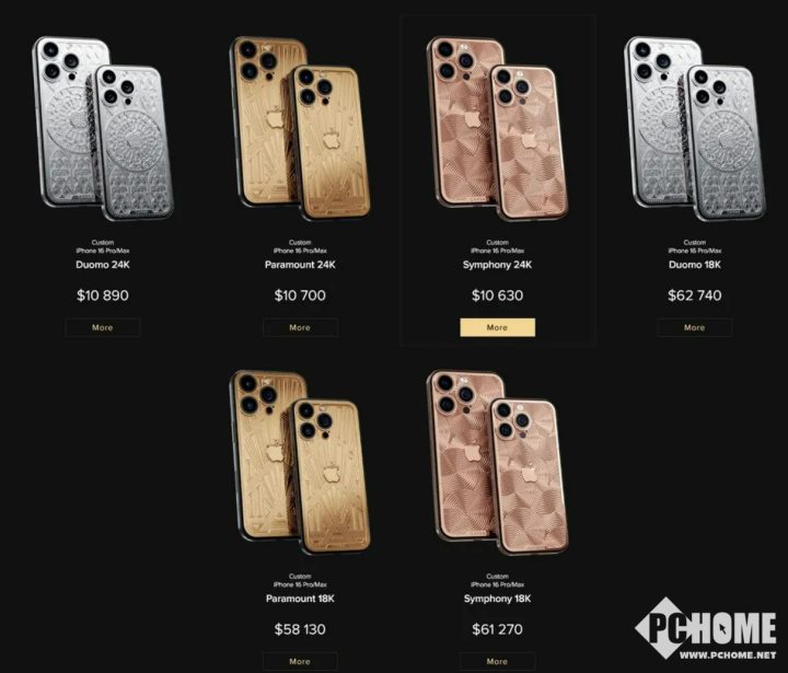 Caviar以其独特、昂贵的科技产品定制服务闻名,此前便推出过多款定制版的iPhone手机,定价也是非常之高。这次的限量定制版iPhone 16 Pro/Max外壳包括Duomo、Paramount、Symphony款式,其中“Symphony”款式采用了阿基米德螺旋的参数化图案。此外,定制版外壳提供18K金以及24K金两种版本可以选择。