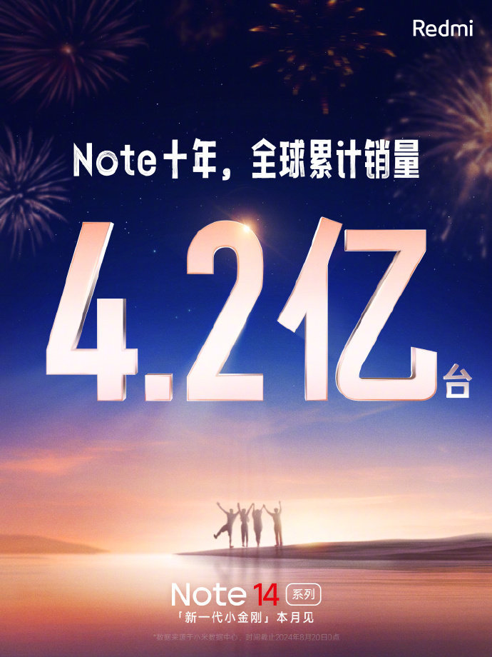 9月13日消息,2014年3月红米正式发布第一代红米Note手机,凭借不俗的性能以及极具竞争力的价格,红米Note系列成为许多年轻人的第一台智能机。今日,Redmi发文庆祝Note 系列诞生10 周年,并宣布该系列手机全球销量累计达到 4.2 亿台。