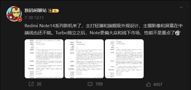 据此前博主@数码闲聊站 爆料,Redmi Note14 系列将会有三款机型, 主打轻薄和旗舰级外观设计,摄影像和屏幕在中端机力的表现比较好。他还表示 Redmi 日后将不会推出性能款的 Note 机型。