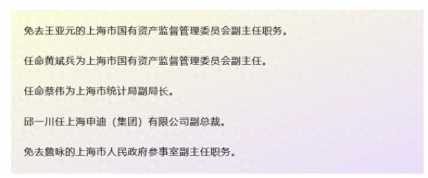 人事任免!黄斌兵任上海市国有资产监督管理委员会副主任;蔡伟任上海市统计局副局长